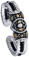 - Rope Trim Edged with Hand-Sculpted Grape Leaves with Pear Shaped and Scrollwork Contrasted by Black Enamel Frames Cuff Bracelet; Crafted in Polished Sterling Silver