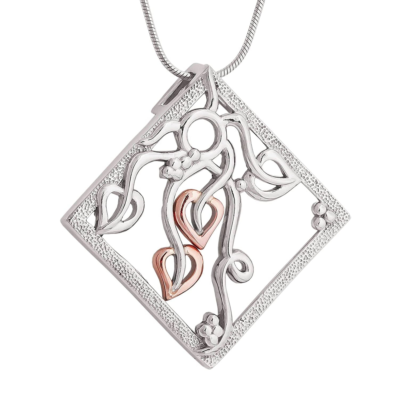 - Hammered Finish, Open-Cut Square Frame Embellished by Cut-Out Hand-Placed Leaves and Curly Vine; Pendant Necklace is Crafted in Hypoallergenic, Polished Rhodium Plated Sterling Silver