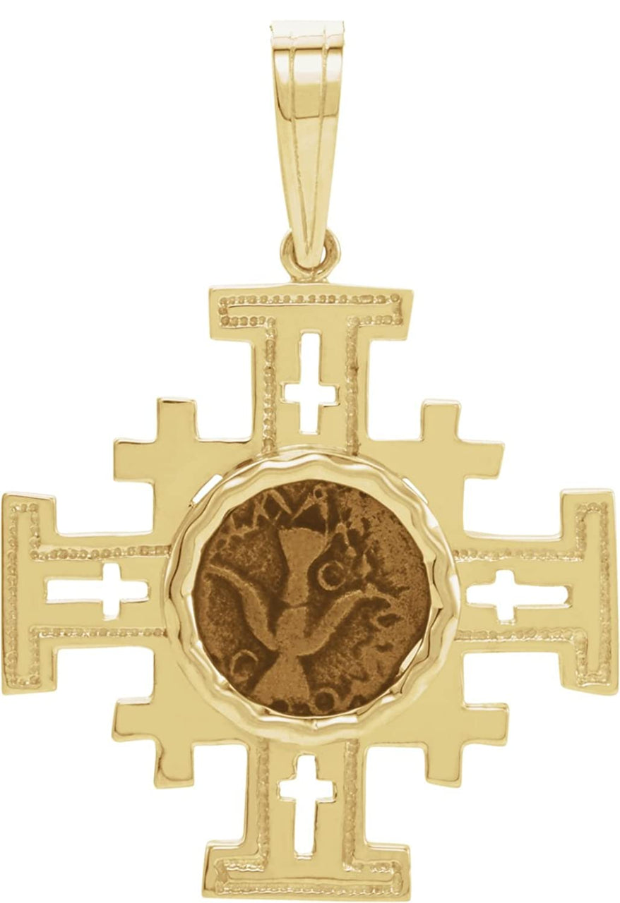 - Jerusalem Mite Coin Cross Pendant Measures 31.25 Millimeters High X 31.75 Millimeters Wide