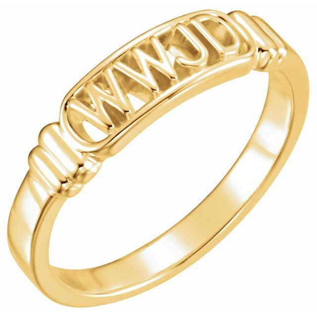 - Signet WWJD Flat Edged Ring in 10k Yellow Gold with a Polished Finish