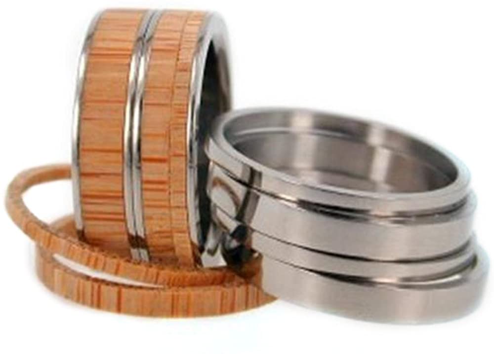Bamboo Wood 8mm Comfort-Fit Titanium Interchangeable Rings Set, Size 8.5