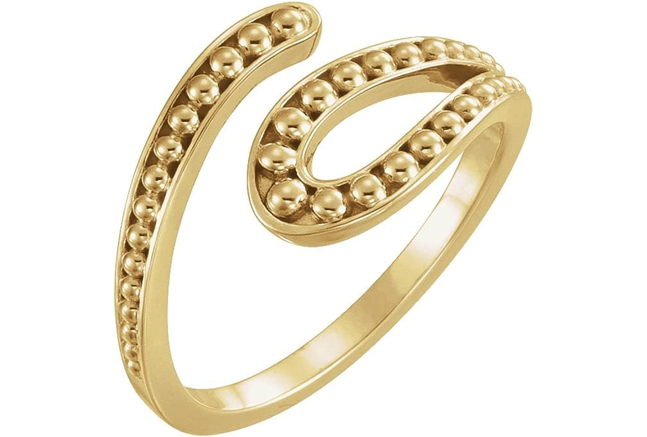 - Continuous Beaded-Link Set in Bypass Pattern with High-Polished Pipe Edging; Ring is Crafted in 14k Yellow Gold