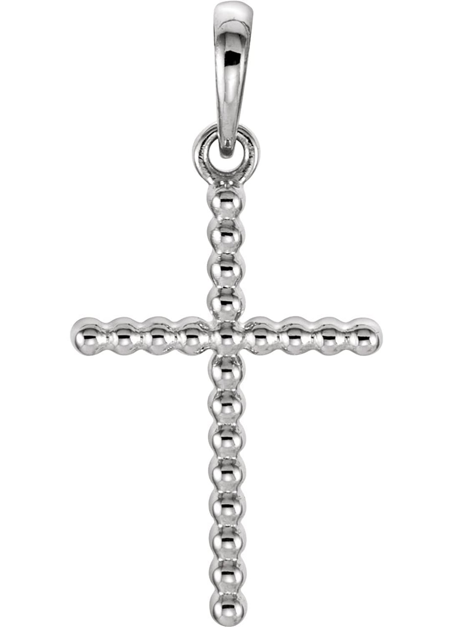 Beaded Cross Rhodium-Plated 14k White Gold Pendant (17.5X12.10 MM)