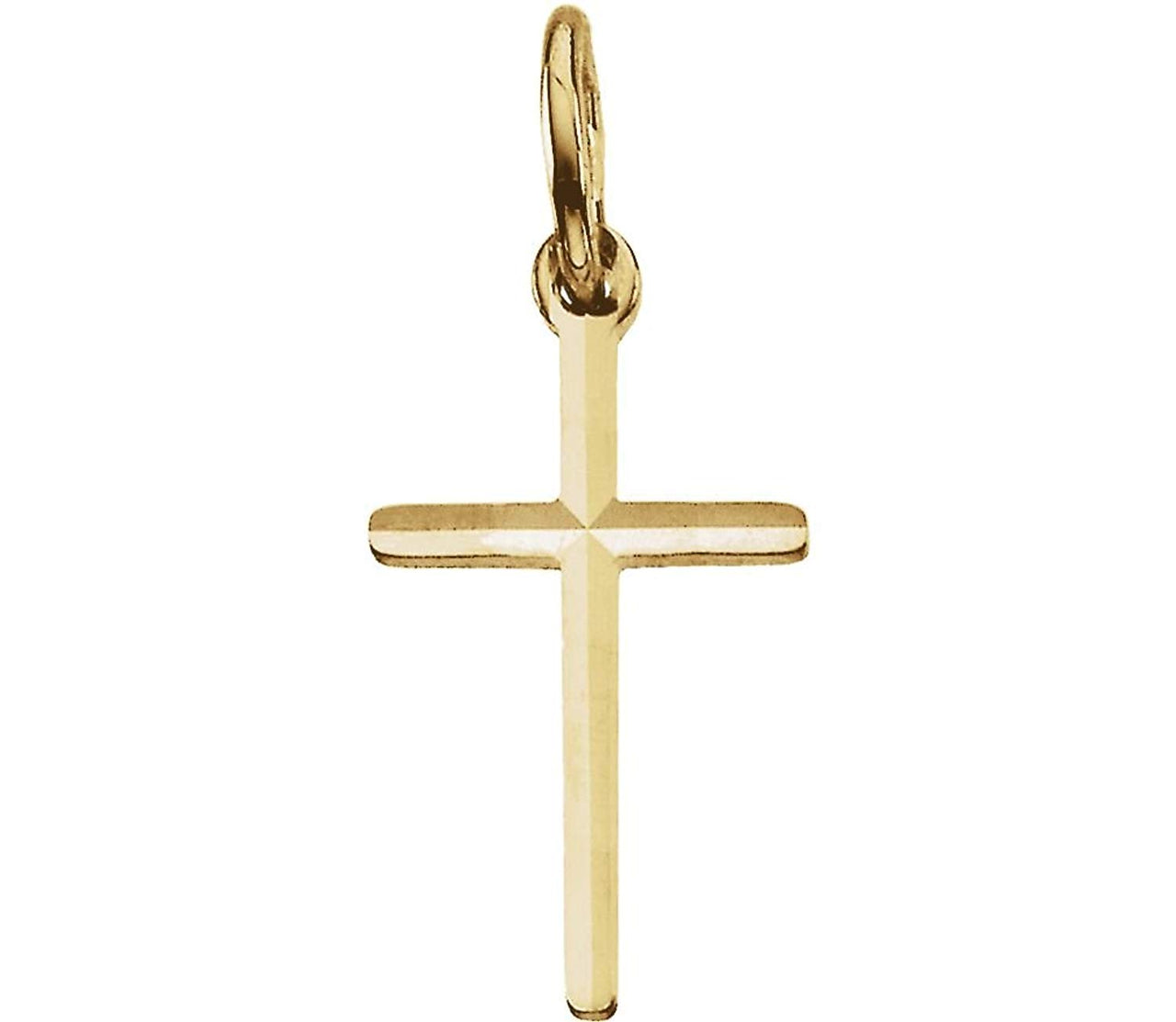 - Beveled Edging Cross Adorn with Slightly Rounded Ends of Arms; Pendant is Crafted in Polished 14k Yellow Gold