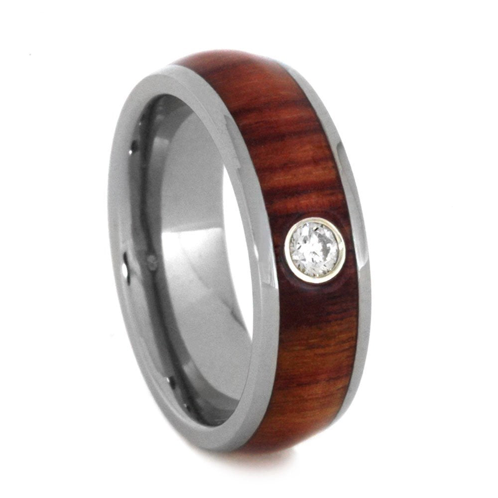 Bezel-Set Diamond, Tulip Wood 6.5mm Comfort-Fit Titanium Wedding Band