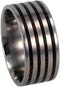 - This Wedding Band is Crafted with Four Black and Red Mokume Colored Stripes Inlay on a Hypoallergenic Titanium Sleeves, Flat Profile Band
