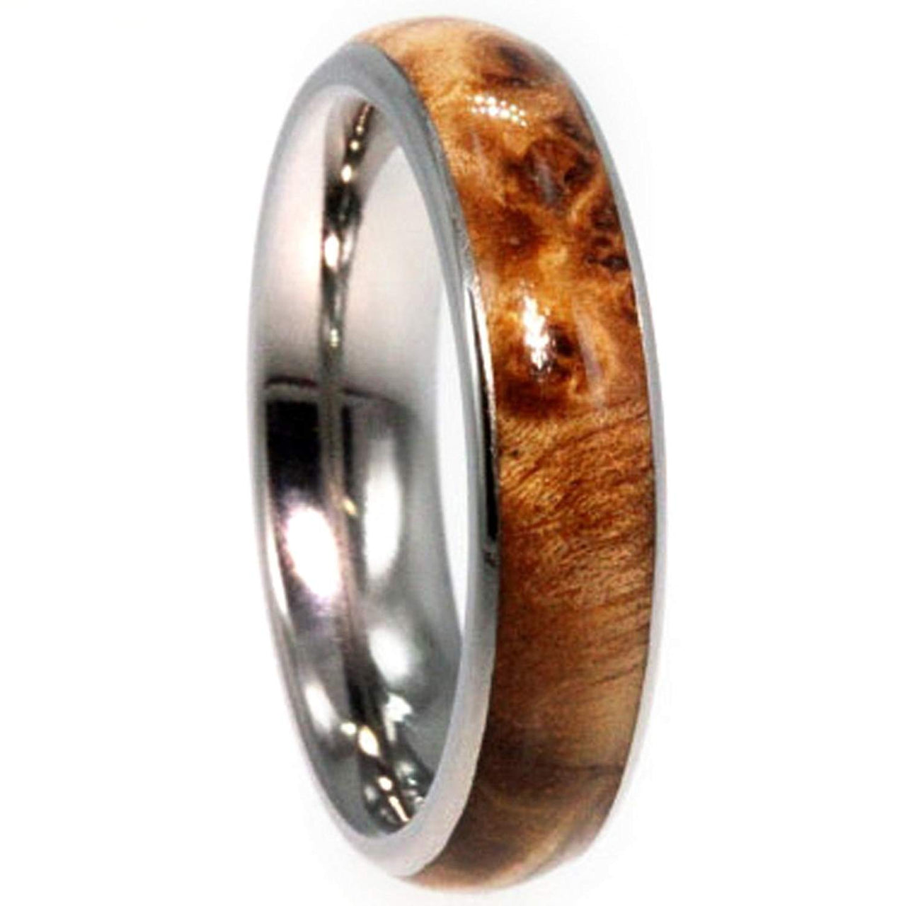 - Comfort-Fit Band is 5.00 Millimeters Wide; Left to Right Measurements are: .50 Millimeters Titanium, 4.00 Millimeters Black Ash Burl, .50 Millimeters Titanium
