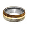 • HAND-MADE, Comfort-Fit, Polished Finished, Hypoallergenic Titanium Sleeve Surrounded by an Black Ash and Deer Antler Overlay with a Pinstripe of 14k Yellow Gold On-Center; Both Materials are Continuous with no Joints; Domed Profile Band