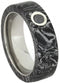 With an enchanting appeal this titanium and mokume ring is sure to have heads turning. The striking, solitaire black diamond, encircled by silver, floats in a pool of swirling black and silver mokume gane. Stray from the ordinary wedding rings with this modern and unique mokume ring.