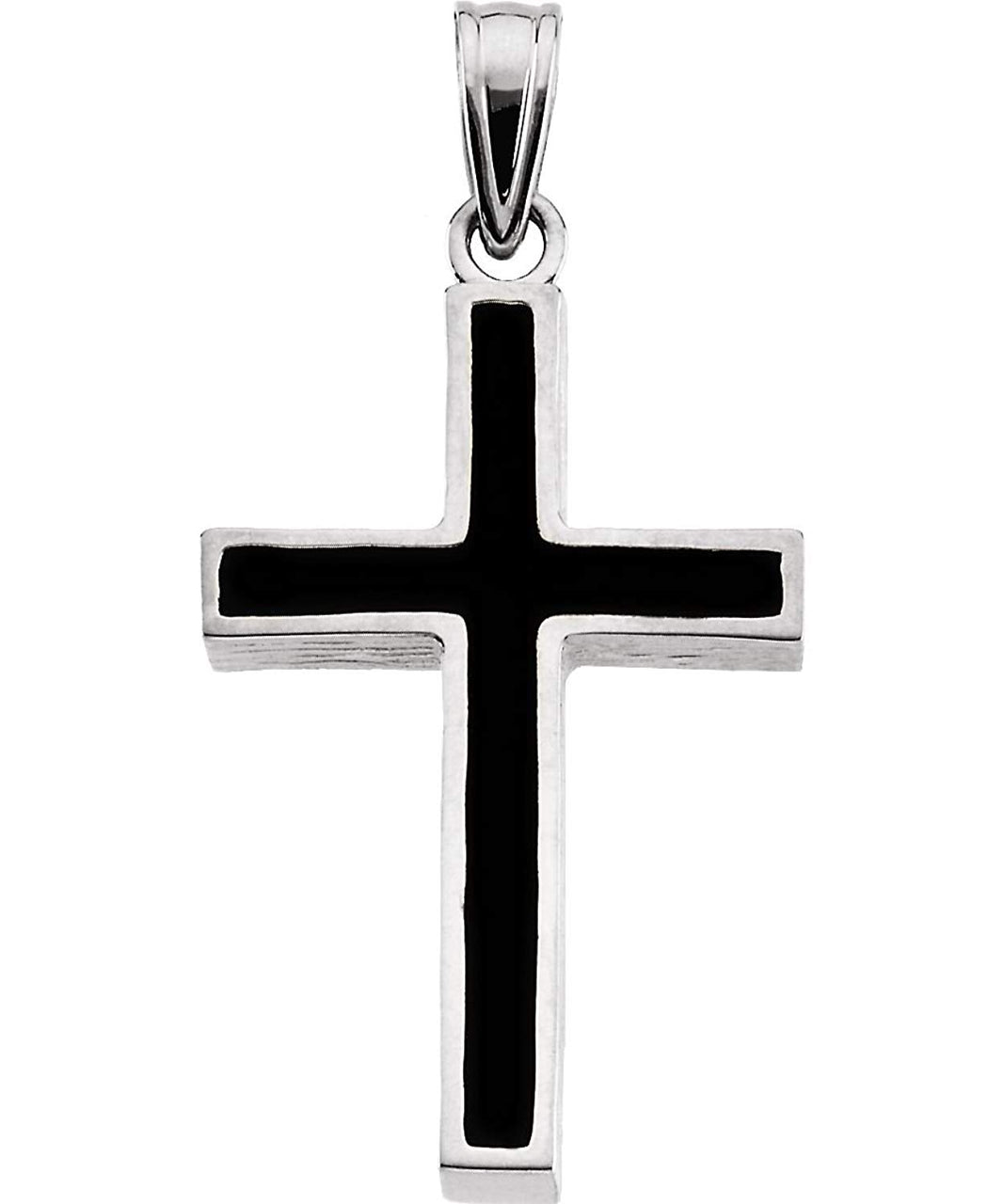 - Inlaid Black Enamel Cross Contrasted with Thick Raised Polished Border; Pendant is Crafted in Sterling Silver