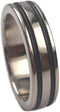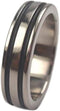 This titanium wedding band has two black enamel pinstripes. The black enamel has been baked on and is very durable. Titanium offers a unique combination of beauty and strength. You'll be amazed at the smoothness, comfort, and feather light weight of titanium. Titanium has a hardness far exceeding that of gold or silver; it has one of the highest ratios of strength to density of all metallic materials. Because of this strength and lightness, it’s used to build space shuttles. Our titanium is 6AL4 Grade 5 surgical implant quality titanium, corrosion resistant, and hypoallergenic; resulting in jewelry that easily withstands the most active lifestyle and pure titanium is impervious to common chemicals and may be worn during daily activities. It will, like other metals, acquire scratches through daily wear. They are easy to see on new jewelry, however, over time a natural satin patina will be developed making scratches almost unnoticeable.