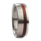 • EXOTIC, Non-Jointed Bloodwood Pinstripe Inlay on Flat Profile Ring; Band is Crafted on Hypoallergenic, Matte Finished Titanium