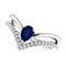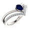 Blue Sapphire Pear and Diamond Chevron Sterling Silver Ring (.145 Ctw,G-H Color, I1 Clarity)