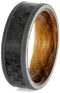 - Exotic, Non-Jointed Carbon Fiber Inlay Contrasted with Richly Textured Sandblasted Titanium Edges and Whiskey Barrel Inner Sleeve on a Flat-Profile, Comfort-Fit, Hypoallergenic Titanium Wedding Band