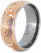 This tantalizing titanium ring features a copper and silver Mokume Gane overlay. Mokume-Gane is a mixed-metal laminate with distinctive layered patterns. Translated as "wood-grain metal," the name was borrowed from a pattern created in the forging of Samurai swords and other sharp-edged tools.