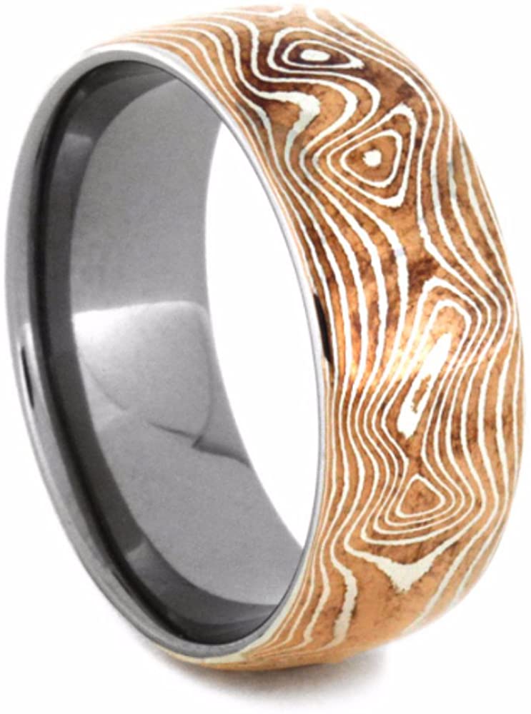 The Men's Jewelry Store (Unisex Jewelry) Copper and Sterling Silver Mokume 7mm Comfort-Fit Titanium Wedding Band