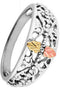 Cut-Out Granulated Black Hills Gold Motif Rhodium Plate Sterling Silver Band, Size 6.5