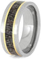 - Flat-Profile, Comfort-Fit, Deer Antler, 14k Yellow Gold Pinstripes Inlay on a Hypoallergenic, Titanium Wedding Band