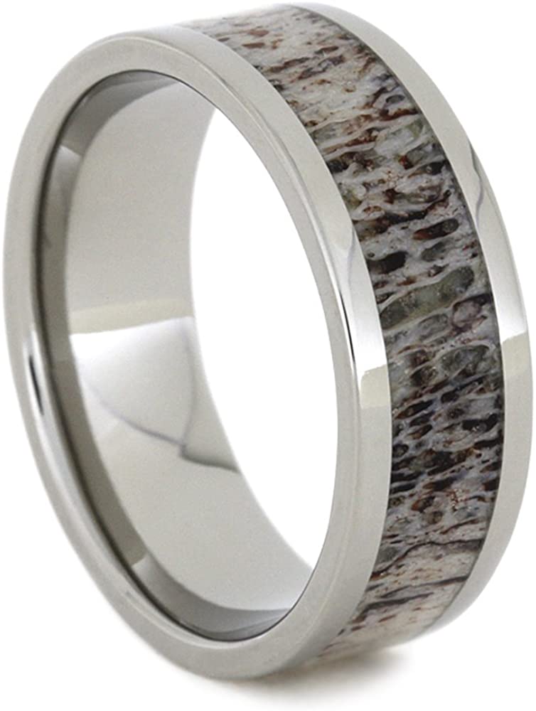 - Naturally Shed Deer Antler Inlay; Hand-Made Band Crafted on a Hypoallergenic, Pipe-Edged, Comfort Fit, Flat Profile Polished Titanium Ring