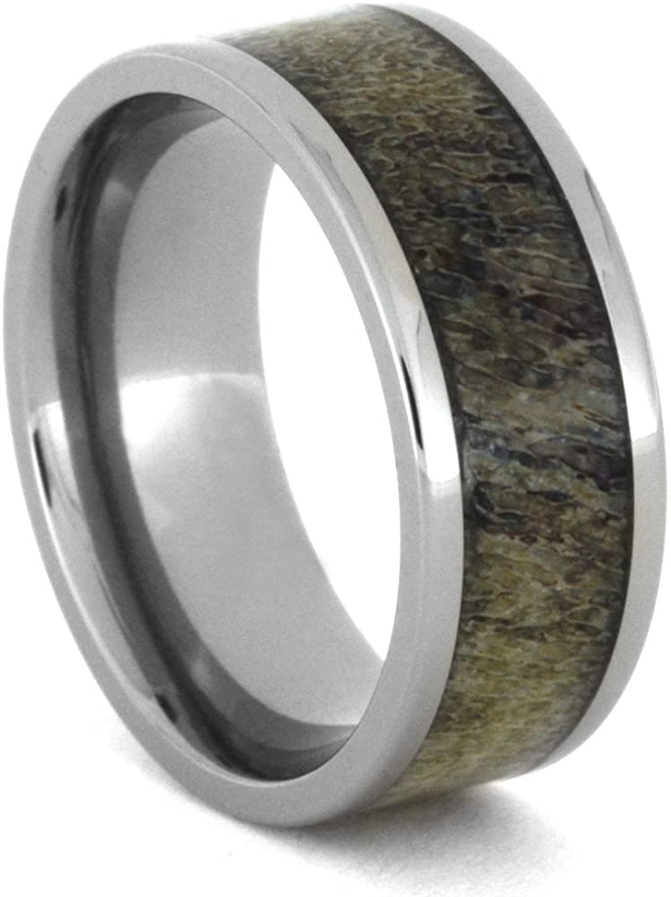 Deer Antler Inlay 8mm Comfort-Fit Titanium Band, Size 9.5