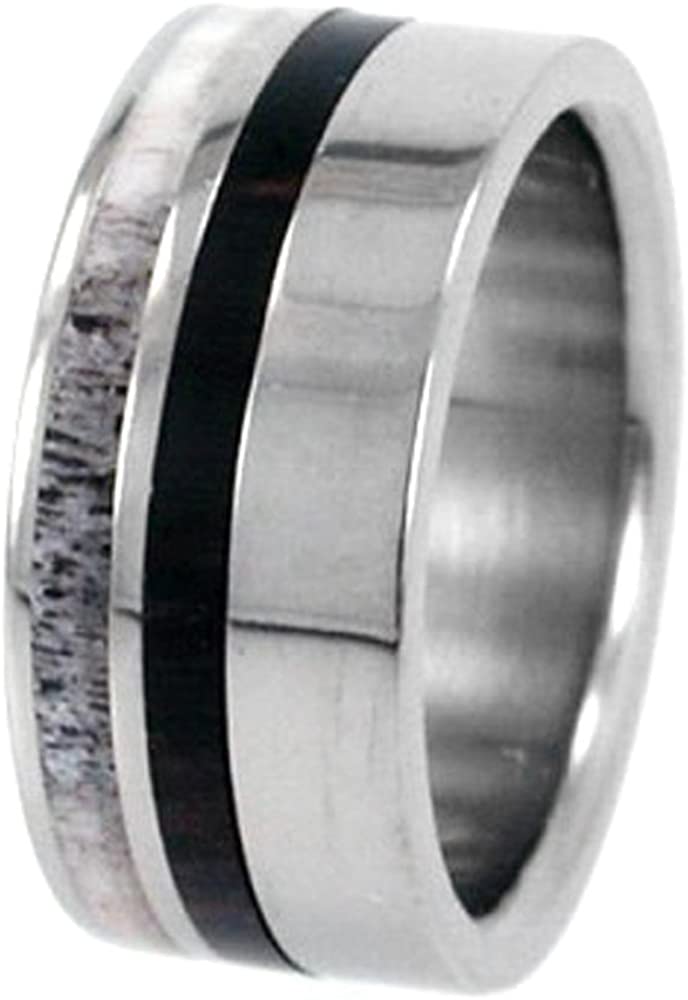 - MEASUREMENTS: Comfort-Fit Band is 10.00 Millimeters Wide; Left to Right Measurements: 1.00 Millimeters Titanium, 2.00 Millimeters Deer Antler or Wood, 1.00 Millimeters Titanium, 2.00 Millimeters Deer Antler or Wood, 4.00 Millimeters Titanium