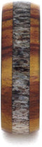 Deer Antler, Tulip Wood 7mm Comfort-Fit Titanium Band, Size 14.75