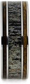 • MEASUREMENTS: Band is 9.00 Millimeters Wide; Left to Right: .50 Millimeters Titanium, 1.50 Millimeters Whiskey Barrel Oak Wood, .50 Millimeters Titanium, 4.00 Millimeters Deer Antler, .50 Millimeters Titanium, 1.50 Millimeters Whiskey Barrel Oak Wood, .50 Millimeters Titanium