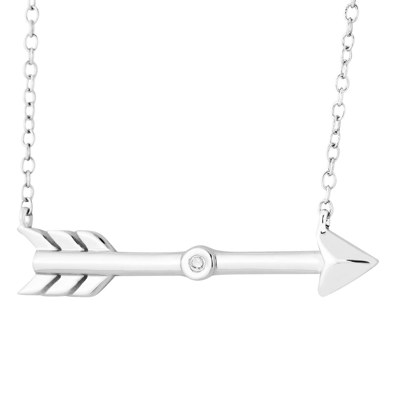 - Slightly Dome, Smooth Edge Arrow Accent with Center Hand-Set Diamond; Pendant Necklace is Crafted in Polished Rhodium Plated Sterling Silver