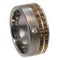 - Flat Profile, Hypoallergenic Frosted and Polished Titanium Texture Sleeve Enveloped by Round Cut Diamond with Bocote Wood Stripes Inlay; Comfort-Fit Ring