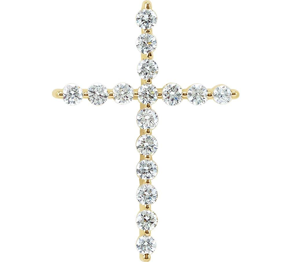 • Classic Religious Cross Features 16 Round Hand-Set Diamonds; Pendant is Crafted in Polished 14k Yellow Gold