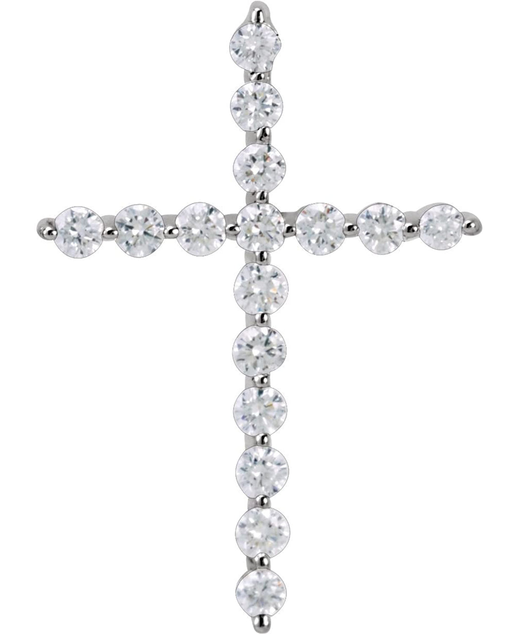 - Classic Religious Cross Features 16 Round Hand-Set Diamonds; Pendant is Crafted in Polished Rhodium-Plated 14k White Gold