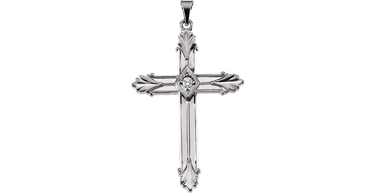 - Fleury Cross is Adorned with Diamond is Finished in Polished 14K White Gold