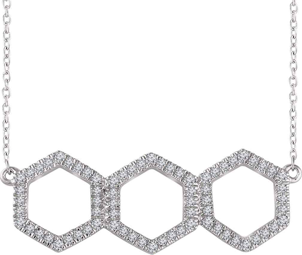 - 72 Hand-Set Diamonds on Three Hexagon Link Pattern; Necklace is Crafted in Polished 14k White Gold