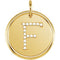 • 16 Hand-Set Diamond Filled Initial F Contrasted on a Bead-blasted Finish Framed with a Raised Polished Round Border; Pendant is Crafted in 14k Yellow Gold
