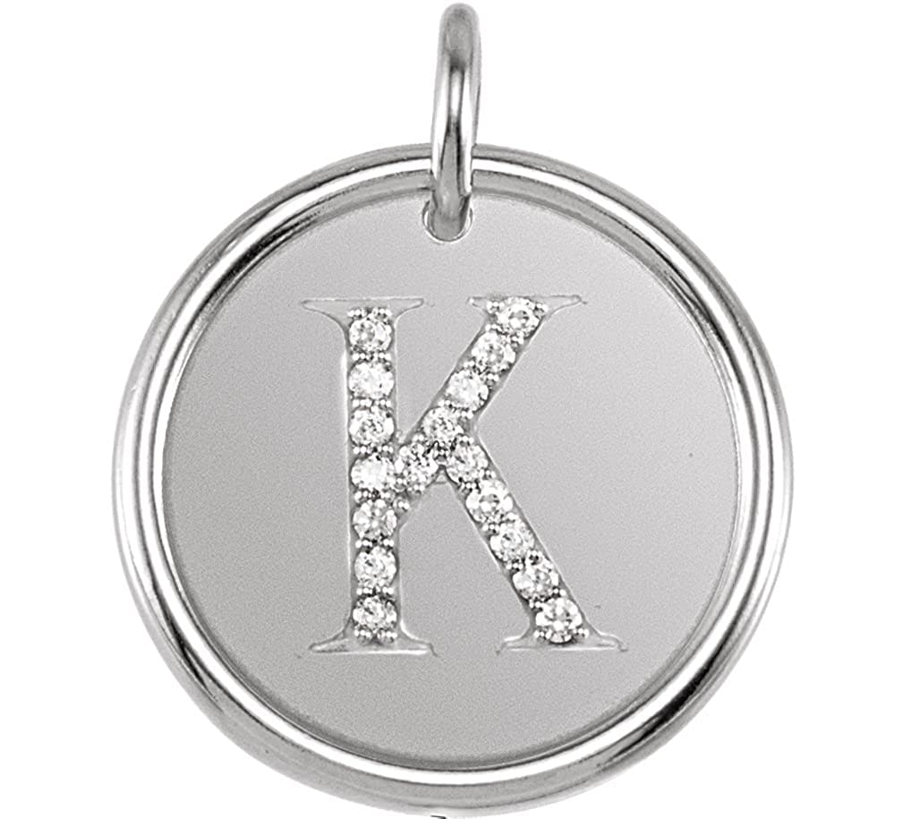 • 17 Hand-Set Diamond Filled Initial K Contrasted on a Bead-blasted Finish Framed with a Raised Polished Round Border; Pendant is Crafted in Rhodium-Plated 14k White Gold