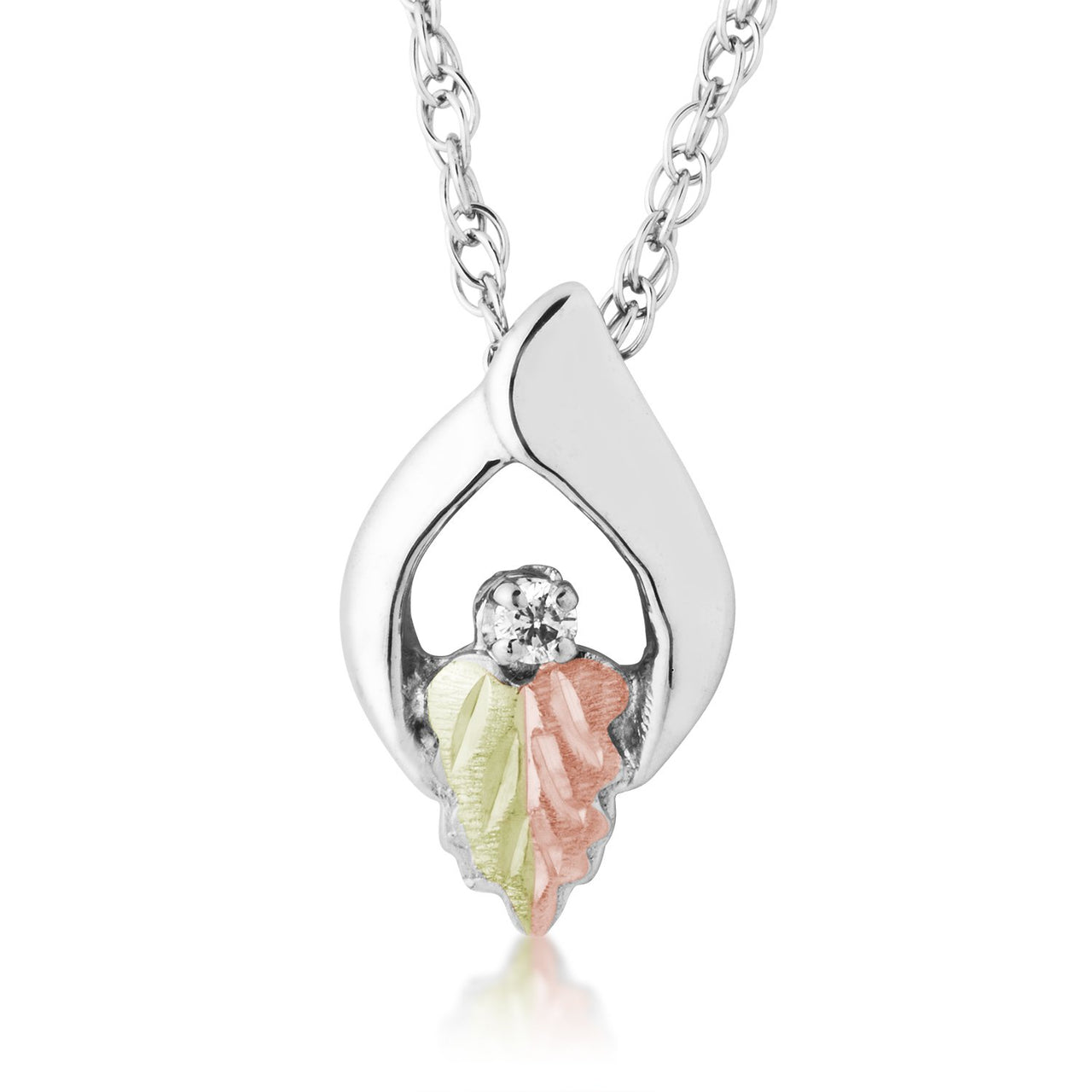 Diamond Split Leaf Pendant Necklace, Sterling Silver, 12k Green and Rose Gold Black Hills Gold Motif, 18''