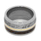 - Dome Profile Band Features Dinosaur Bone and Etch Gibeon Meteorite with 14k Yellow Gold Pinstripe Inlay on a Hypoallergenic, Titanium Comfort-Fit Band