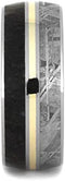 - MEASUREMENTS: Band is 9.00 Millimeters Wide; Left to Right Measurements are: .50 Millimeters Titanium, 3.00 Millimeters Dinosaur Bone, .50 Millimeters Titanium, 1.00 Millimeter 14k Yellow Gold, .50 Millimeters Titanium, 3.00 Millimeters Gibeon Meteorite, .50 Millimeter Titanium