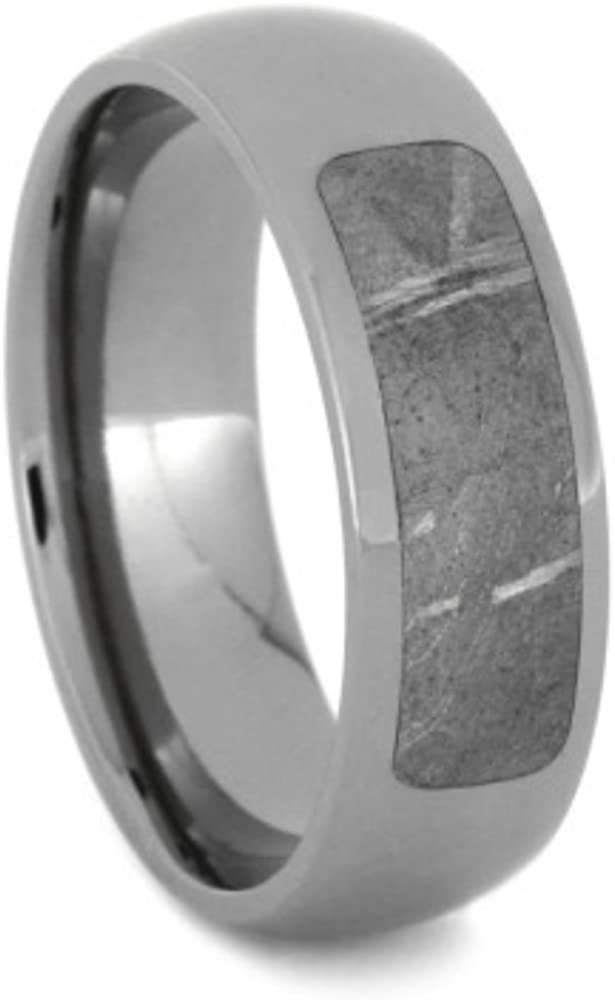 Dome Titanium 7mm Comfort-Fit Titanium Wedding Band with Meteority Inlay, Size 9.75