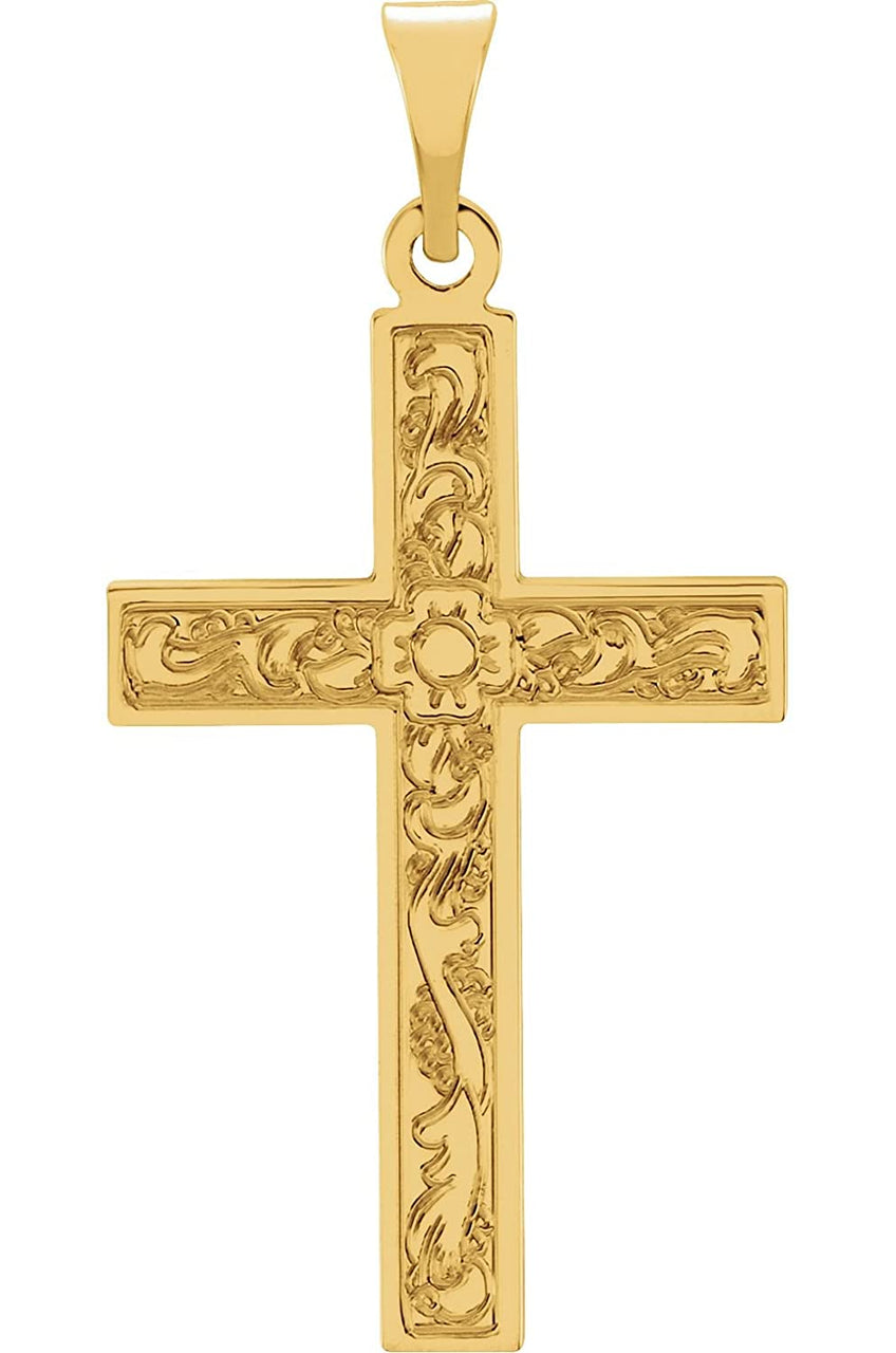 Embossed Flowers Cross 14k Yellow Gold Pendant