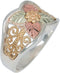 Floral Brocade Granulated Bead Band, 10k Yellow Gold, Sterling Silver, 12k Green and Rose Gold Black Hills Gold Motif, Size 4.25