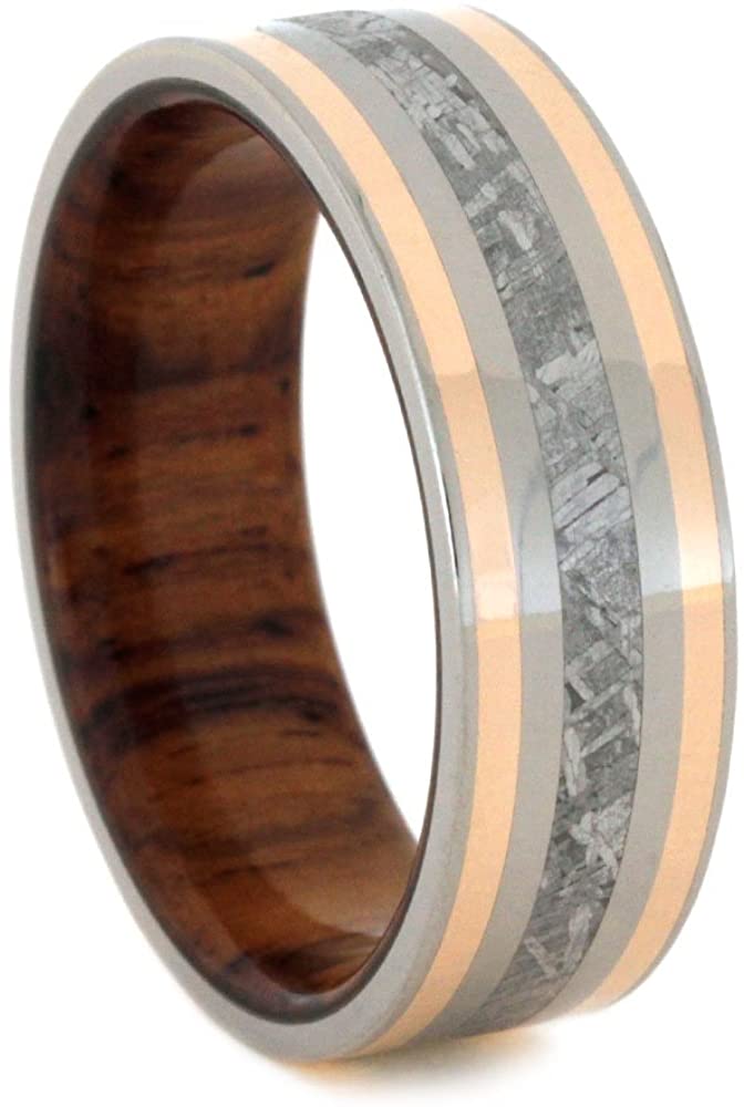 Gibeon Meteorite, 14k Rose Gold, Titanium 7mm Comfort-Fit Honduran Rosewood Band, Size 10.5