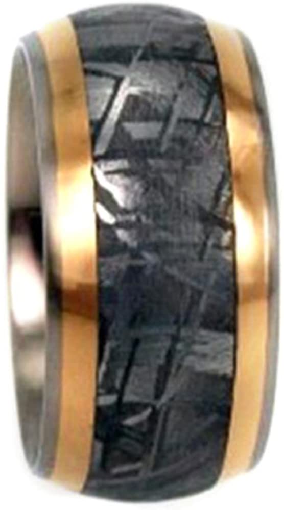 Gibeon Meteorite, 18k Yellow Gold 8mm Comfort-Fit Titanium Wedding Band, Size 8.75