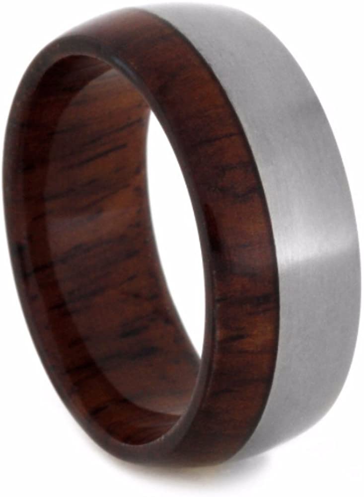 Honduran Rosewood Burl 8mm Comfort-Fit Matte Titanium Wedding Band, Size 10.5