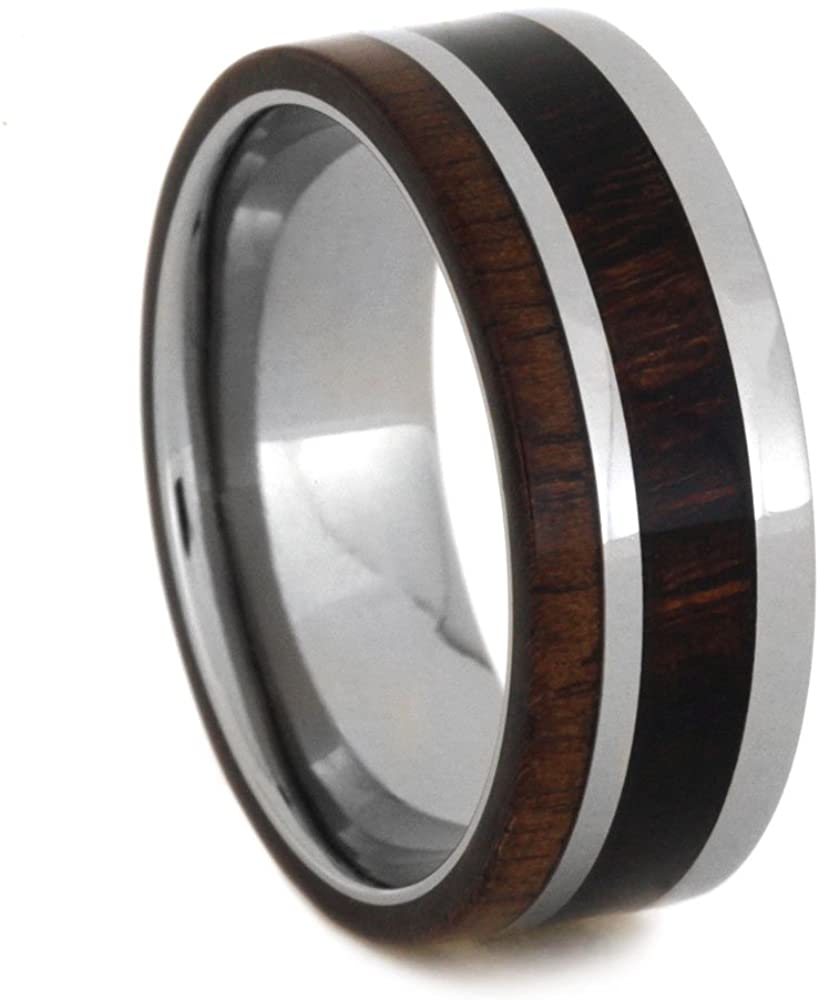 - Comfort-Fit Band is 8.00 Millimeters Wide; Left to Right Measurements are: 2.00 Millimeters Walnut Wood, 1.00 Millimeters Titanium, 3.00 Millimeters Ironwood, 2.00 Millimeters Titanium