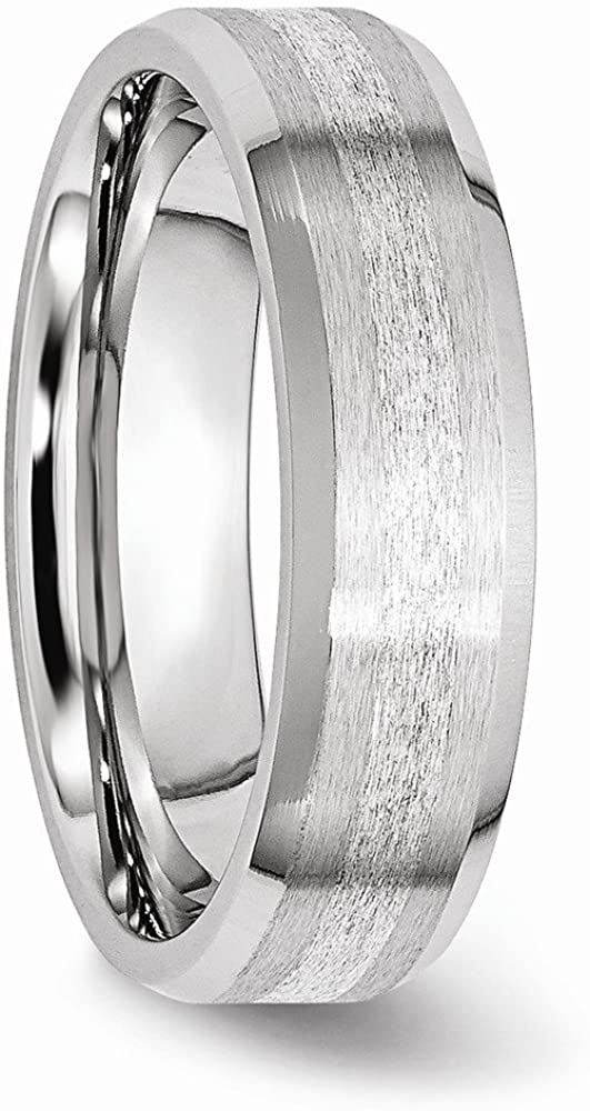 Men's Brushed Cobalt Chrome, Sterling Silver Inlay 6mm Beveled Edge Band Size 13