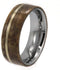 - EXOTIC Non-Jointed Buckeye Burl Wood Overlay with an Off-Set Pinstripe of Lush 14K Yellow Gold Inlaid on a Flat, Hypoallergenic, Polished Titanium Band