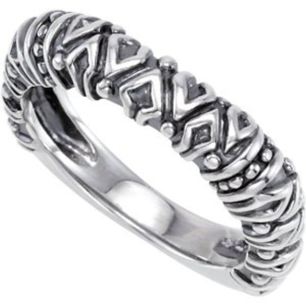 - Antiqued Raised Tribal Design with Granulated Beads Rounded Square Band; Stacking Band is Crafted in Polished Sterling Silver