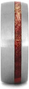 - Exotic, Non-Jointed Peek-a-Boo Pinstripe of Red Box Elder Burl Wood Pops with Richly Textured Matte Titanium on a Round Profile, Comfort-Fit, Hypoallergenic Titanium Band
