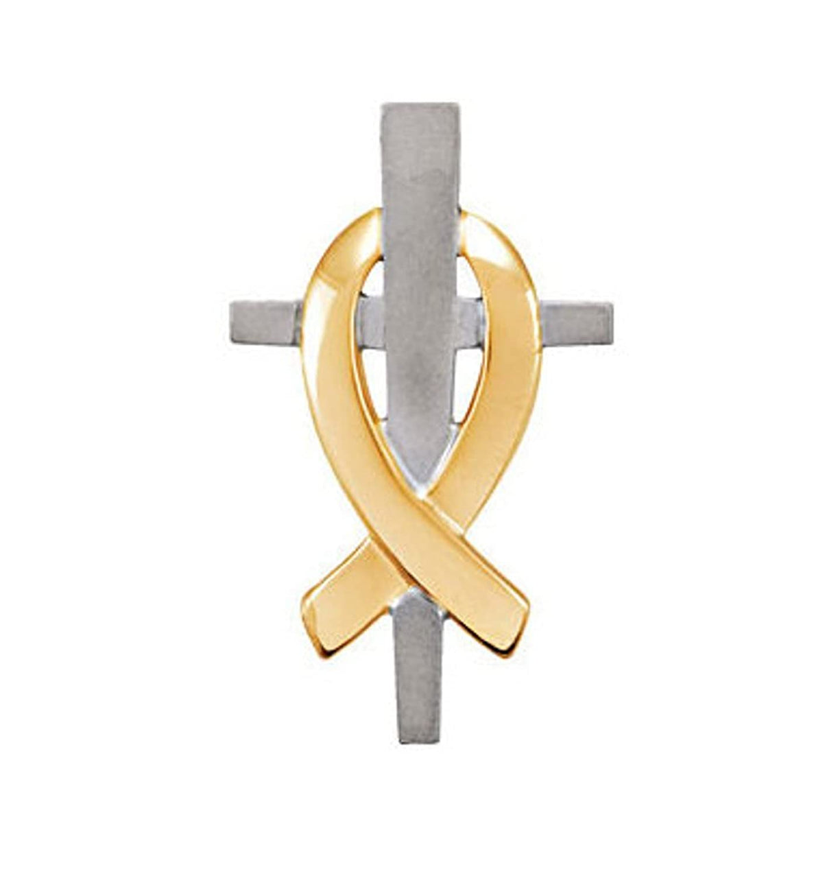 • Two-Tone Cross with High Polished Ribbon on cross Gives A Great Meaning to Remember Our Troops; Pendant is Crafted in Rhodium-Plated Sterling Silver and Yellow Gold